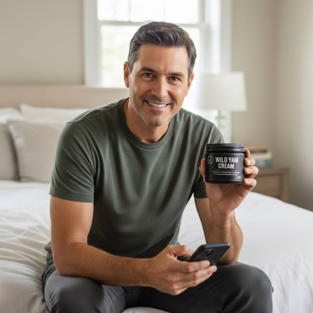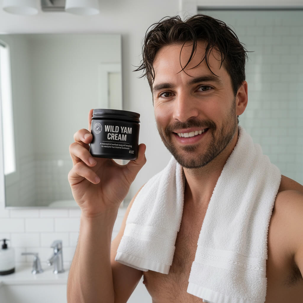 It’s not a testosterone supplement or replacement. Wild Yam Creamsupports your body’s natural hormone balance, which can help your system hold on to testosterone more effectively. Many men report improvements in strength, drive, and mood —especially after age 35, when testosterone begins to gradually decline.